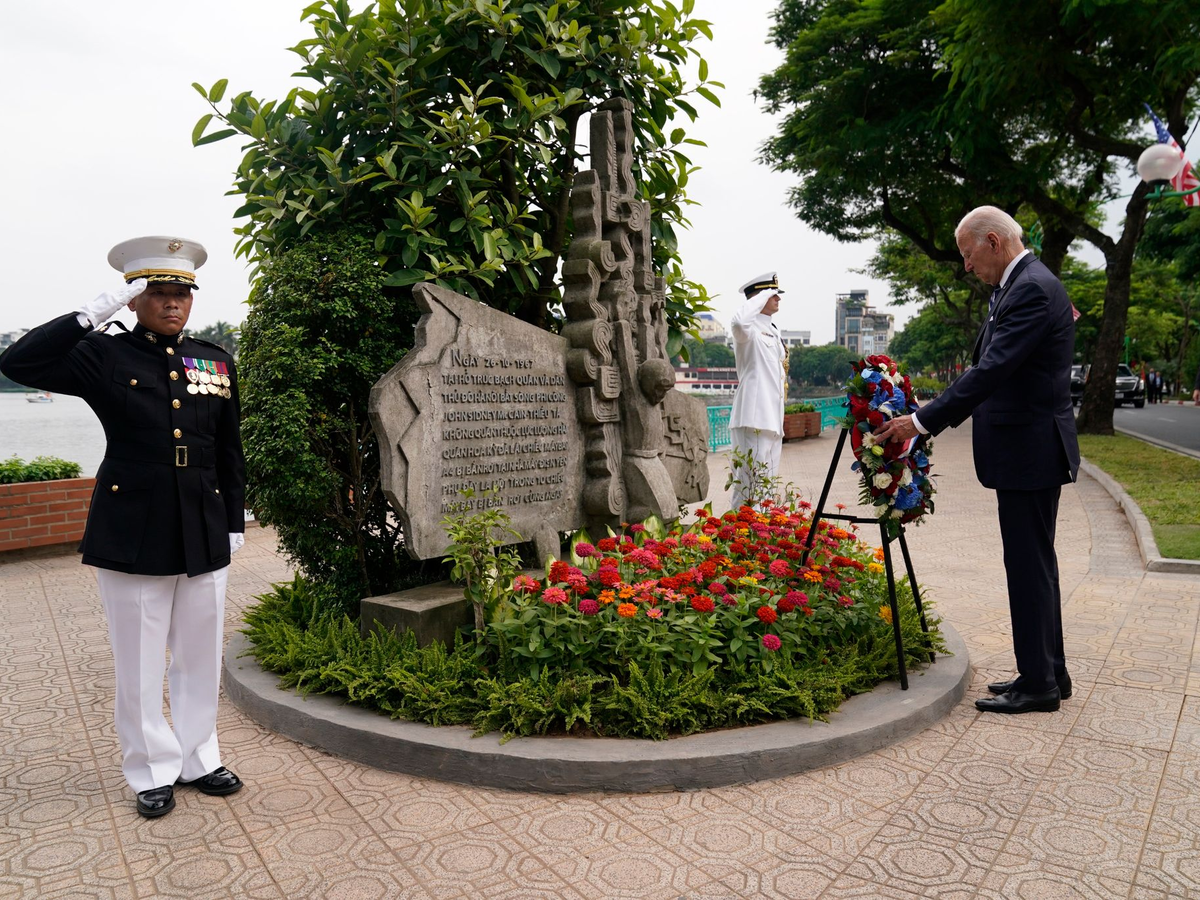 11.09.2023 - 11:56:08 | dpa.deUS-Präsident Joe Biden hat während seines Kurztrips nach Vietnam Blumen an einem Denkmal für den gestorbenen Senator John McCain niedergelegt. «Ich vermisse ihn. Er war ein guter Freund», sagte Biden.