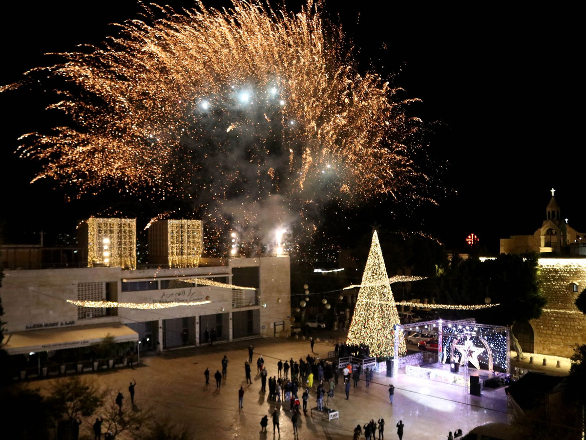 Der große Weihnachtsbaum, der sonst in der Adventszeit vor der Geburtskirche steht, fehlt. Bereits im November hatten die Oberhäupter der Kirchen in Jerusalem festgelegt, dass es wegen des Krieges keine Weihnachtsdekoration im Heiligen Land geben soll.