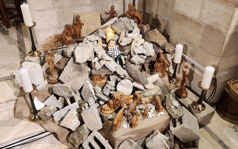 12.12.2023 - 11:22:59 | dpa.deNeben dem Altar liegt ein Haufen Steine, darum herum Holzfiguren. In der Mitte liegt eine Puppe eingehüllt in einen schwarz-weißen Palästinenserschal, wie Fotos zeigen. Angehörige der evangelisch-lutherischen Weihnachtskirche in Bethlehem wollten an die unter Trümmern verschütteten Kinder im Gazastreifen erinnern, sagt Pfarrer Munther Issak. «Die Idee ist, dass Christus geboren ist unter den Unterdrückten und denen, die heute leiden.» Die Installation ersetze in diesem Jahr den Weihnachtsbaum.
