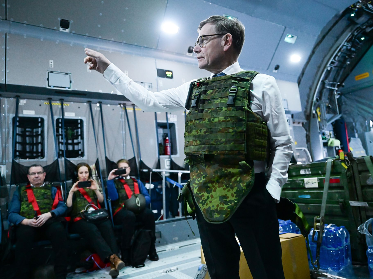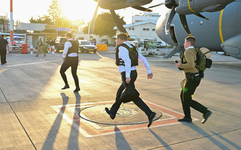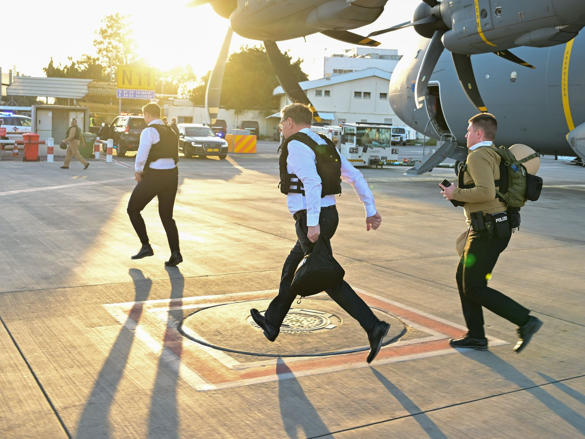 Wegen der erhöhten Gefährdungslage angesichts der andauernden und wiederholten Angriffe aus dem Iran sowie aus dem Libanon von der Hisbollah-Miliz mit Raketen und Drohnen auf Israel reiste der Minister nicht wie sonst üblich bei Reisen mit einem Airbus der Flugbereitschaft der Bundeswehr an, sondern mit einem Militär-Transportflugzeug der Bundeswehr vom Typ A400M.