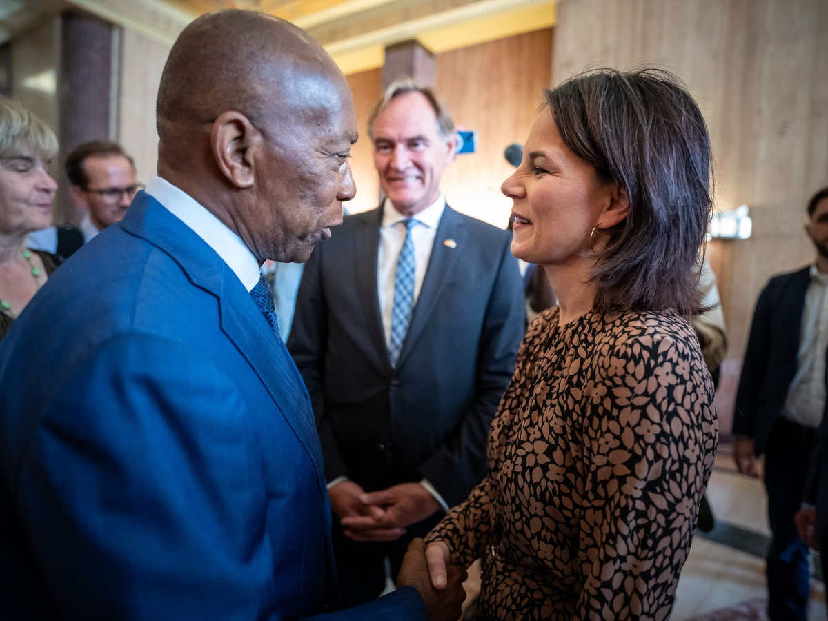 Annalena Baerbock im Gespräch mit Advario-Finanzvorstand Thomas Seifert. Die Bundesaußenministerin besuchte in Houston die Firma, die ein Ammoniakspeichersystem entwickelt hat. - Foto: Michael Kappeler/dpa Der texanische Gouverneur Greg Abbott (r) empfängt Bundesaußenministerin Annalena Baerbock in Austin. - Foto: Michael Kappeler/dpa Außenministerin Annalena Baerbock (Grüne) neben ihrer Sprecherin Kathrin Desiree Deschauer vor dem Kapitol von Austin. - Foto: Michael Kappeler/dpa Annalena Baerbock wird von Houstons Bürgermeister Sylvester Turner empfangen. Im Hintergrund: Leipzigs Oberbürgermeister Burkhard Jung. - Foto: Michael Kappeler/dpa