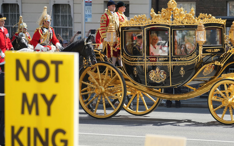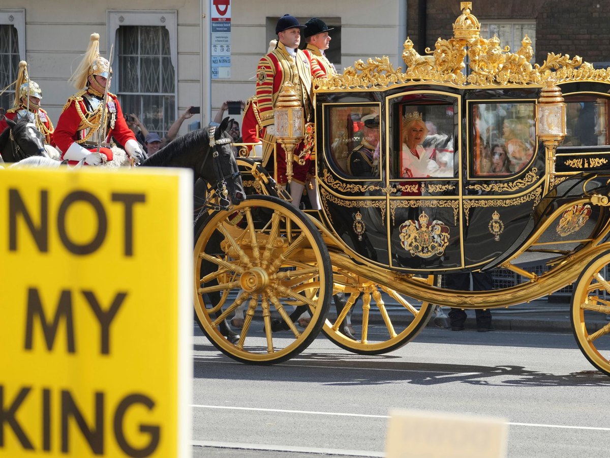 Vor dem Parlament versammelten sich viele Schaulustige, aber auch Royal-Gegner der Gruppe Republic, die eine Abschaffung der Monarchie fordern.
