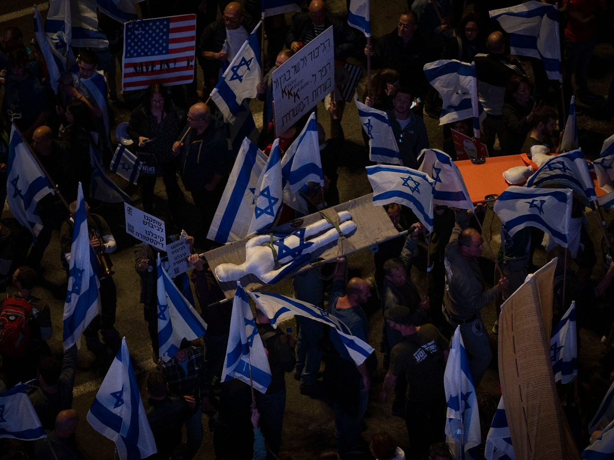 Am Mittwochabend protestierten auch wieder mehrere Hundert Menschen vor dem US-BotschaftsgebÀude in Tel Aviv. Die Organisatoren appellieren an die USA, ihren Einfluss zu nutzen und Israels Regierung an ihren umstrittenen PlÀnen zu hindern.