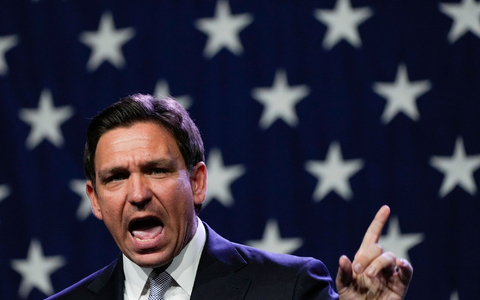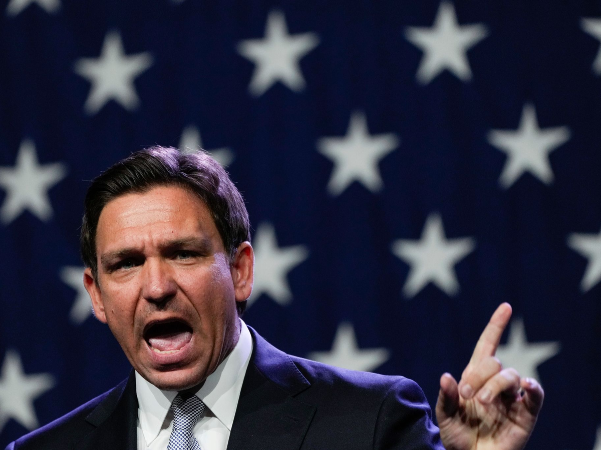 • Floridas Gouverneur Ron DeSantis spricht beim Lincoln-Dinner 2023 der Republikanischen Partei von Iowa. - Foto: Charlie Neibergall/AP