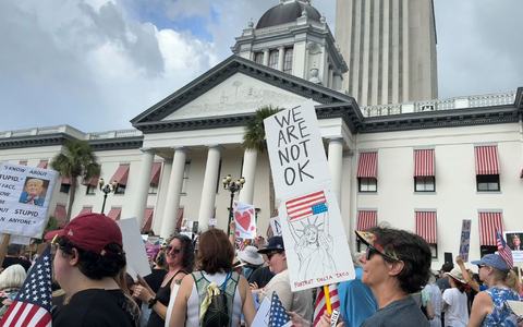 Auch in Städten wie Atlanta, Philadelphia und Los Angeles waren auf TV-Bildern große Menschenmengen zu sehen. In Florida wurden Protestierende auf dem Weg zu Trumps Wohnsitz Mar-a-Lago von der Polizei gestoppt. In der Hauptstadt Washington veranstaltete die Koalition «Refuse Fascism» (Lehnt den Faschismus ab) eine kleinere Demonstration. Im Miami gab es unterdessen eine Gegen-Demo, bei der die Teilnehmer Trump zum Geburtstag beglückwünschten, wie der Sender NBC berichtete.