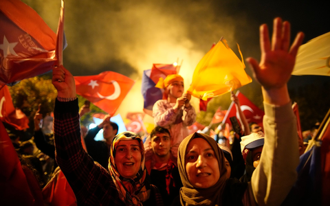 Erdogan schlug nach seinem Wahlsieg in Ankara sowohl aggressive als auch versöhnliche Töne an. Er warf westlichen Medien Stimmungsmache vor und bezeichnete die Opposition als Terroristen. Er sagte aber auch: «Heute hat niemand verloren», alle 85 Millionen Einwohner der Türkei hätten gewonnen. Die Demokratie habe gesiegt.