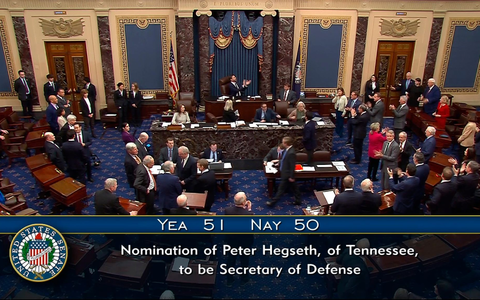 25.01.2025 - 03:53:29 | dpa.deDer umstrittene Ex-Fernsehmoderator Pete Hegseth wird Verteidigungsminister unter US-Präsident Donald Trump. Für die nötige Mehrheit im Senat brauchte es am Ende die Stimme von Vizepräsident J.D. Vance, der ein Patt auflöste. Drei Republikaner hatten gegen Hegseth gestimmt.