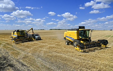 MĂ€hdrescher in der Ukraine von Kampfdrohne getroffen