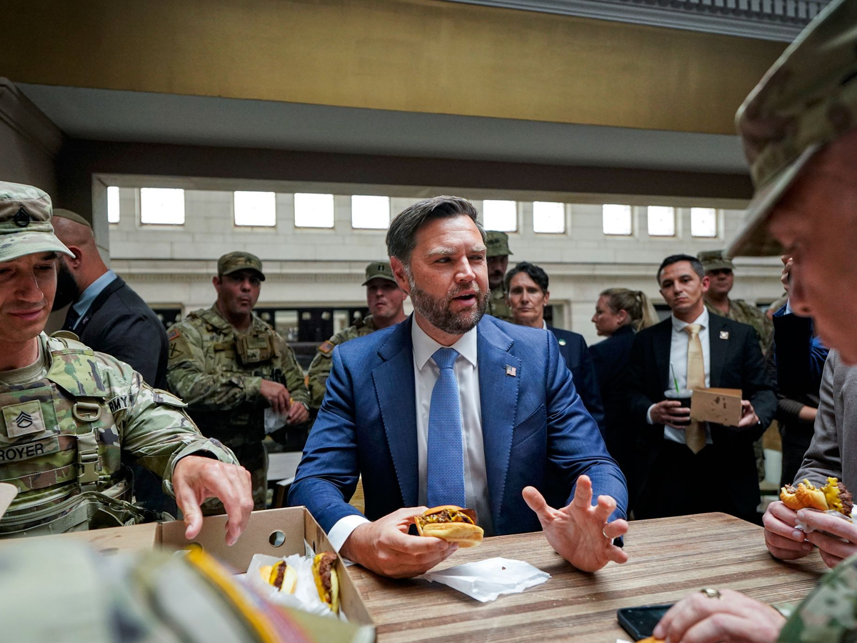 20.08.2025 - 21:25:47 | dpa.deUS-VizeprĂ€sident JD Vance und Verteidigungsminister Pete Hegseth haben unter Protest in Washington stationierte Nationalgardisten besucht. Die beiden Republikaner und andere Regierungsvertreter zeigten sich am Hauptbahnhof Union Station mit Soldaten, die auf Anordnung von PrĂ€sident Donald Trump unter anderem dort im Einsatz sind, und posierten mit ihnen in einem Schnellrestaurant.Â