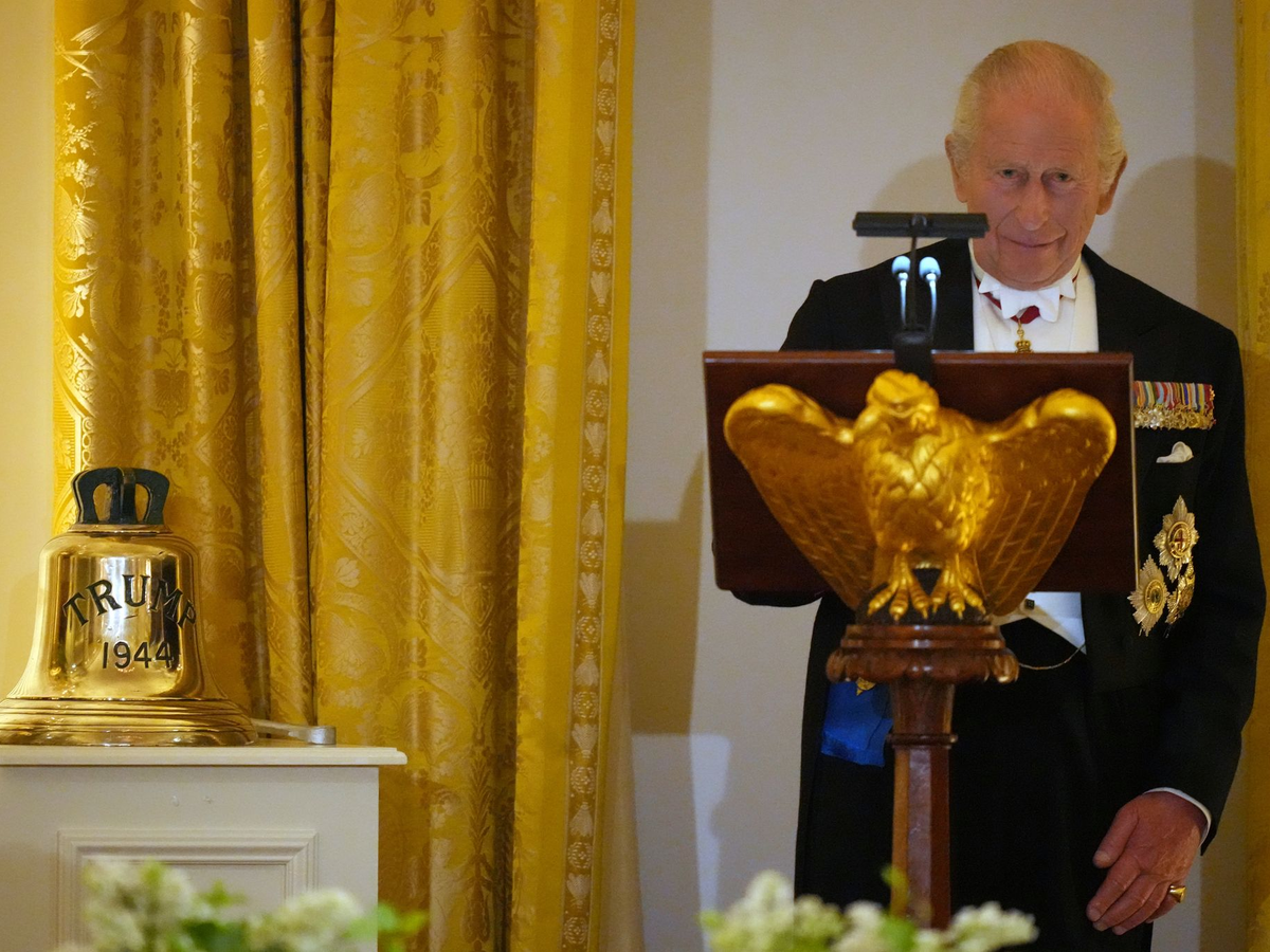 US-Präsident Donald Trump ist dank König Charles III. Besitzer einer glänzenden Glocke, die seinen Namen trägt. Sie stammt von dem 1944 gebauten britischen U-Boot HMS «Trump», wie Charles bei einem Staatsbankett im Weißen Haus sagte. Das Geschenk solle als «Zeugnis der gemeinsamen Geschichte und der glänzenden Zukunft der beiden Nationen» dienen.