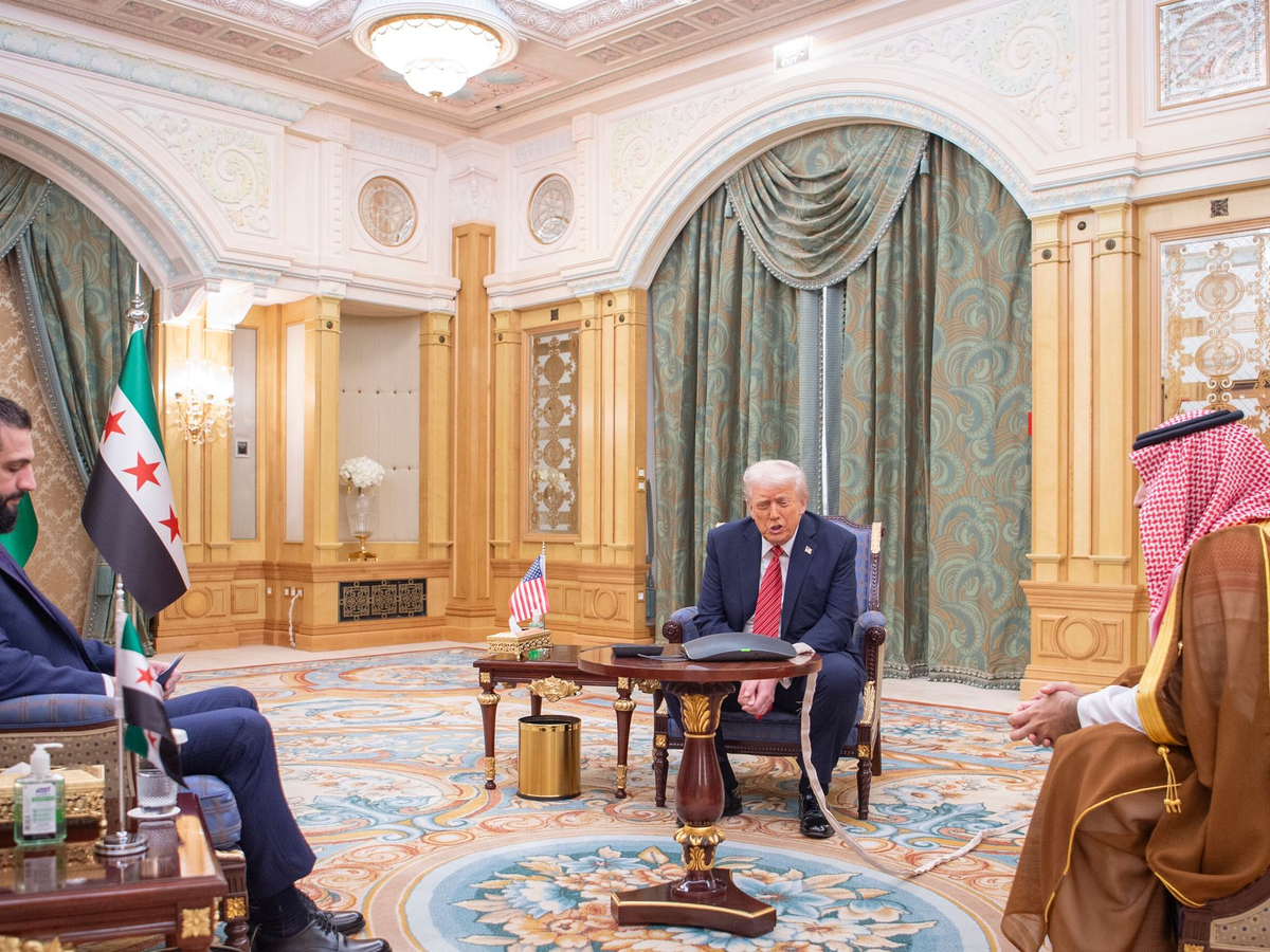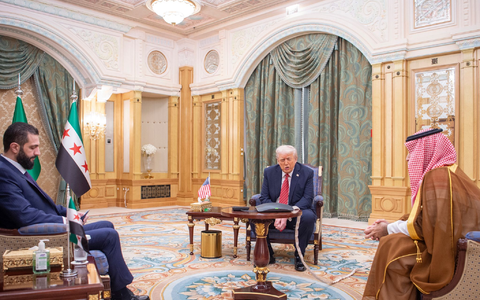 Die Staatsagentur SPA veröffentlichte Bilder, wie ein etwas nervös wirkender al-Scharaa in Riad mit einem Notizbuch in der Hand gemeinsam mit Trump und dem Kronprinzen um eine Telefonanlage sitzt, über die Erdo?an zugeschaltet ist. Al-Scharaa gehörte lange Jahre extremistischen Gruppierungen an und wird von US-Behörden bis heute als Terrorist gelistet. Im Irak hatte er sich dem Terrornetzwerk Al-Kaida angeschlossen, später aber davon losgesagt.