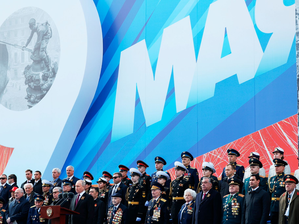 Der Slogan schlägt die Brücke zum Sieg der Sowjetunion über Nazideutschland im Zweiten Weltkrieg, den Russland am 9. Mai groß feiert.