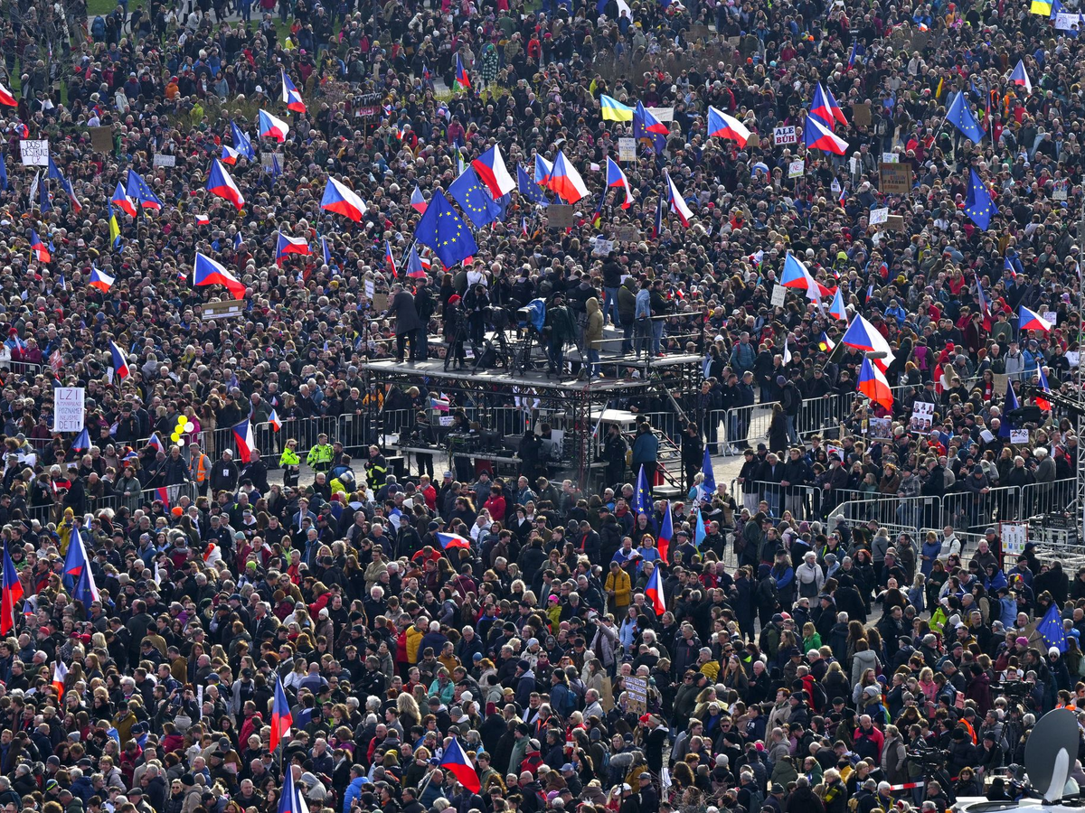 Weitere Kritikpunkte waren die jüngsten Kürzungen bei den Verteidigungsausgaben sowie geplante Änderungen bei der Finanzierung der öffentlich-rechtlichen Medien. Die Veranstalter sprachen von bis zu 250.000 Teilnehmern, die sich in einem großen Park auf der Letna-Ebene hoch über der Moldau versammelten.