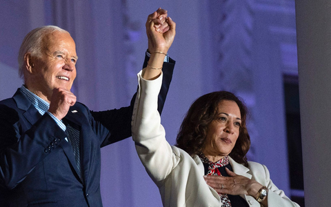 (US-Präsident Joe Biden am 25. Juli in einer Rede zur Nation zu seinem Rückzug aus dem Präsidentschaftsrennen. Als Nachfolgerin schlägt er Vizepräsidentin Kamala Harris vor.)