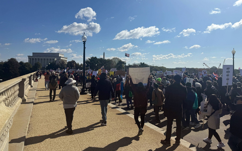 Neben großen Protesten in New York zogen am Morgen etwa in der US-Hauptstadt Washington einer dpa-Reporterin zufolge geschätzt Zehntausende Demonstrierende über die Memorial Bridge in Richtung Innenstadt.