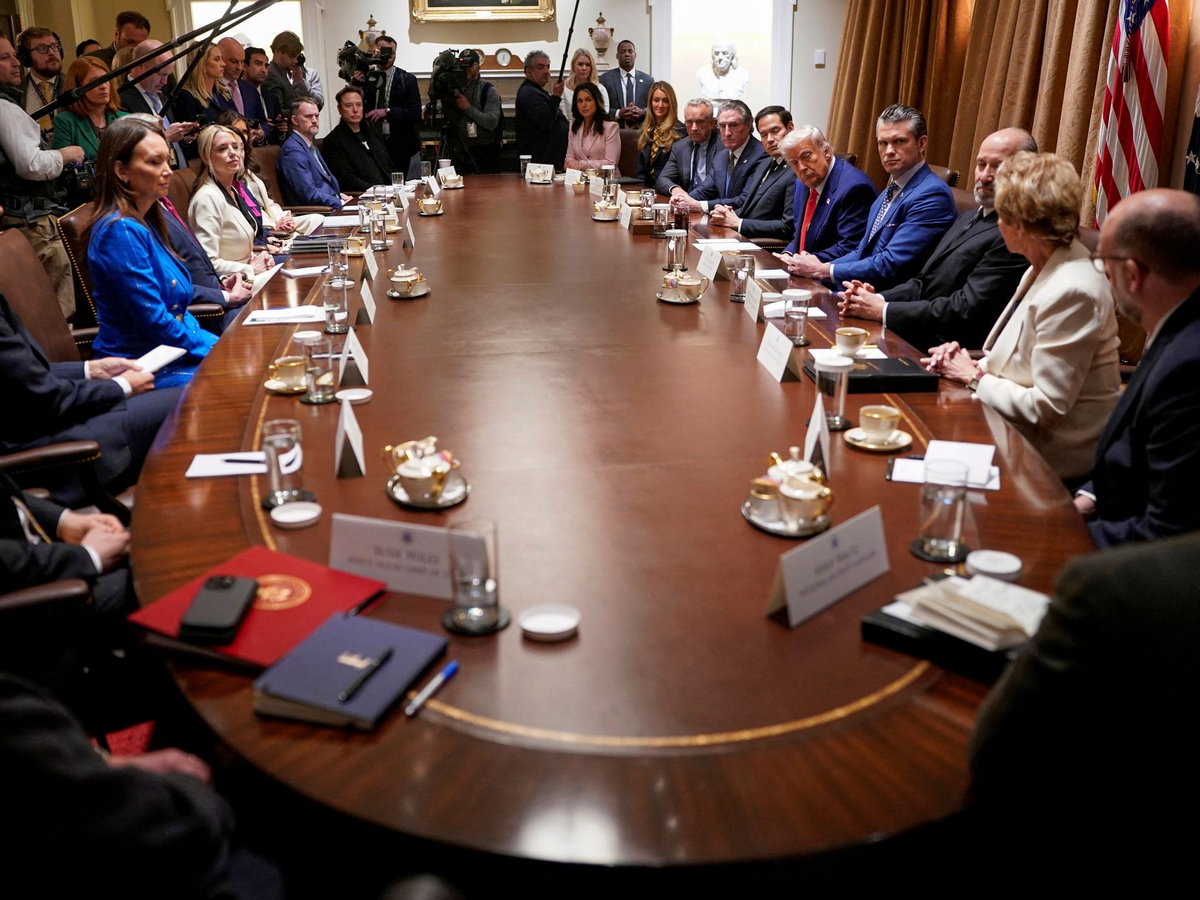 18.04.2025 - 08:00:38 | dpa.deVieles ist anders in der Regierung von US-Präsident Donald Trump - auch die Kabinettssitzungen, die nun maximal transparent sein sollen. Sie zeigen aber vor allem eines: Ohne Lobpreisung und Huldigung des Präsidenten geht es nicht. Vor der Presse ruft Trump an einem ovalen Tisch im Weißen Haus ein Kabinettsmitglied nach dem anderen auf und lässt berichten, wie viele Menschen abgeschoben wurden, welche Umweltgesetze aufgehoben wurden oder wie viel Geld in dem Ministerium eingespart wurde. Und fast jeder beginnt seinen Rapport mit einer Schmeichelei.