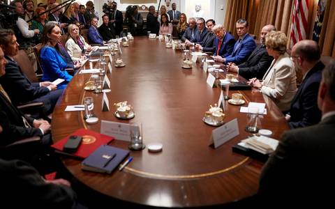 Heimatschutzministerin Kristi Noem lobt die geringe Zahl neuer Migranten mit den Worten: «Herr Präsident, danke für Ihre Führung an der Grenze». Trump, der sich gerne selbst lobt, nimmt die Würdigungen meist lächelnd entgegen und spricht auch bisweilen ein Lob aus – etwa: «Toller Job, Kristi».