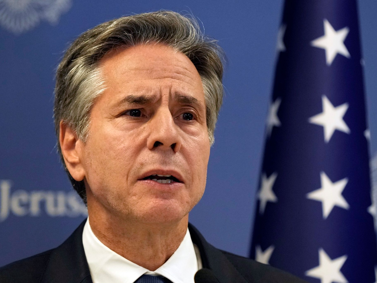 US-Außenminister Antony Blinken spricht in Tel Aviv nach einem Treffen mit dem israelischen Ministerpräsidenten Netanjahu. - Foto: Jacquelyn Martin/AP Pool/dpa