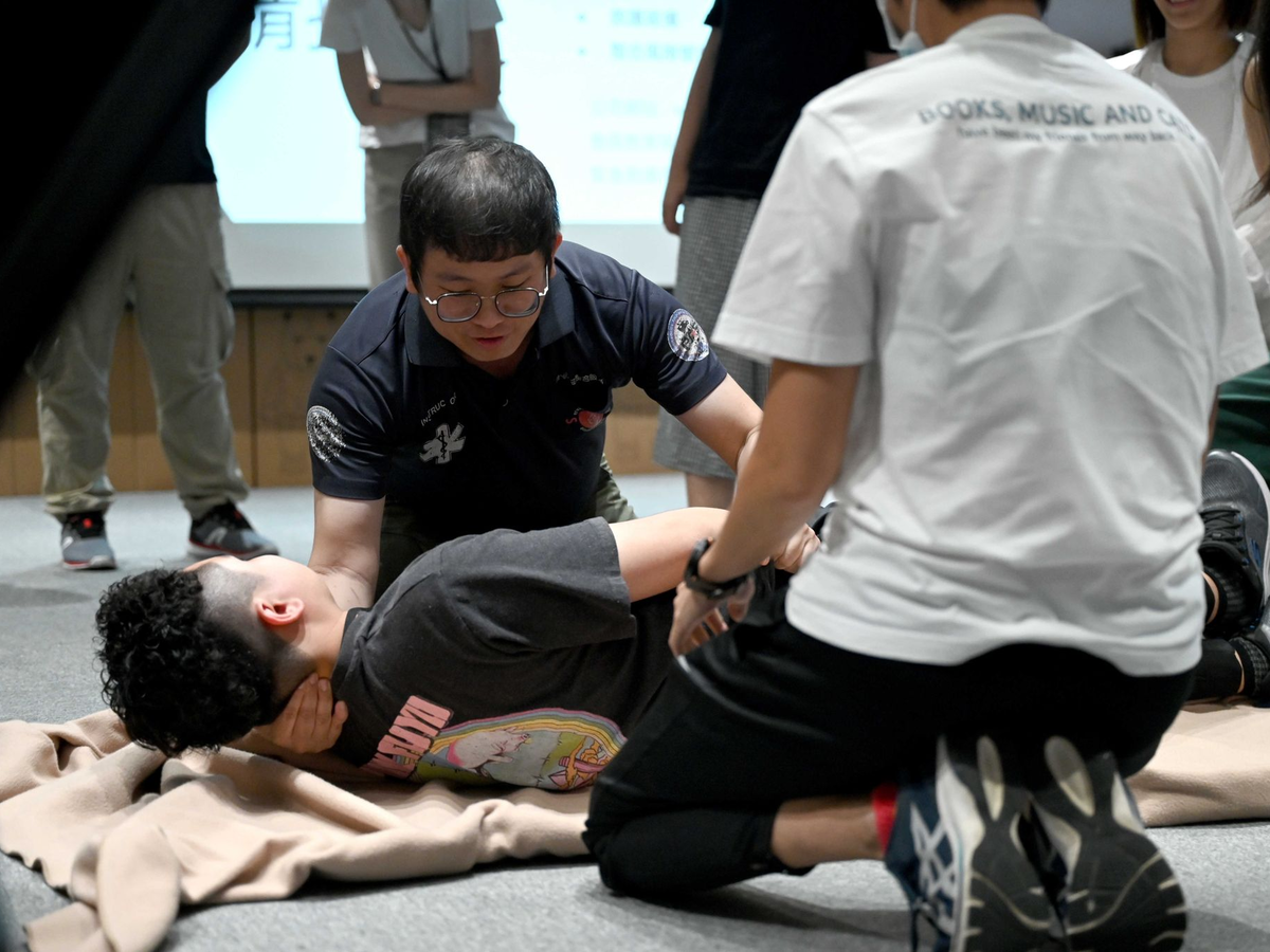 Manche im Raum verstecken sich hinter den Kursunterlagen, um die grauenvolle Szene nicht sehen zu müssen. Kurz danach üben sie selbst, wie sie die Abschnürbinde richtig anlegen oder Verletzte wegtragen müssen. Teilnehmerin Su sagt, sie sei nun etwas beruhigter: «Ich denke, mit dem Wissen über einige Sachen ist es leichter zu verstehen, dass es für sie (China) nicht so leicht ist, wenn sie nach Taiwan kommen und uns angreifen wollen.»