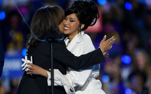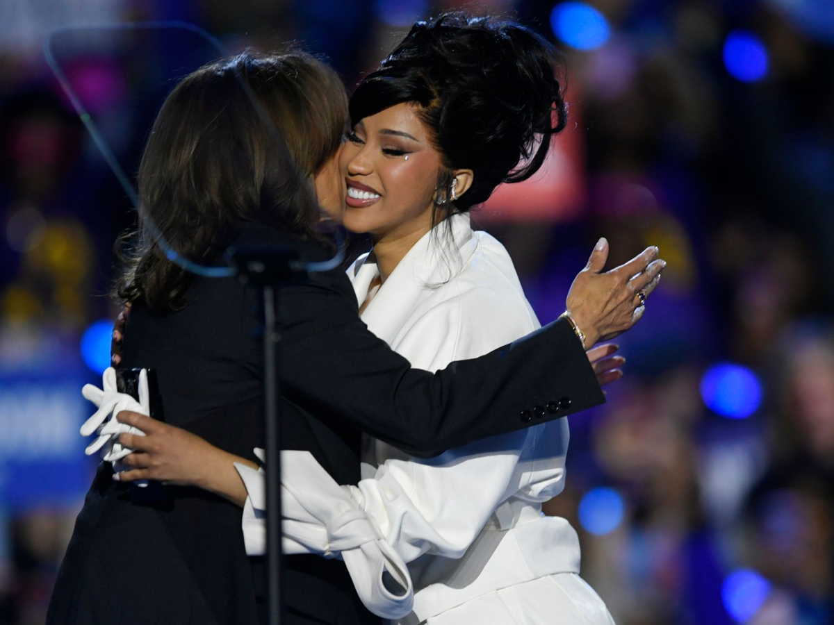 • Umarmung von US-Rapperin Cardi B - im Wahlkampf setzt Harris stark auf Unterstützung aus der Künstlerszene. - Foto: Paul Beaty/AP/dpa
