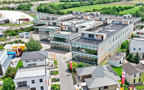 Doch nicht nur Aussteller zeigen, wie das Bauen der Zukunft geht, sondern auch die Blaue Lagune selbst setzt mit ihren Ausstellungsgebäuden ein kräftiges Zeichen: So ist das Bauzentrum in allen Bereichen ein Showcase für gelebte Kreislaufwirtschaft – von der hohen Flexibilität der Gebäude für unterschiedliche Nutzungen mit entsprechender Haustechnikplanung über den Einsatz regenerativer Energiesysteme bis hin zum möglichst einfachen Rückbau bzw. zur alternativen Verwendung von Bauteilen. Dieses durchdachte Konzept sorgte bereits in Architektenkreisen für hohe Anerkennung und großes Interesse. Mit dem ÖGNI/DGNB-Vorzertifikat in Platin ausgezeichnet, bietet das Bauzentrum noch viele weitere zukunftsweisende Highlights, darunter das eigene Photovoltaikkraftwerk oder Detentionsdächer in Kombination mit PV-Modulen.