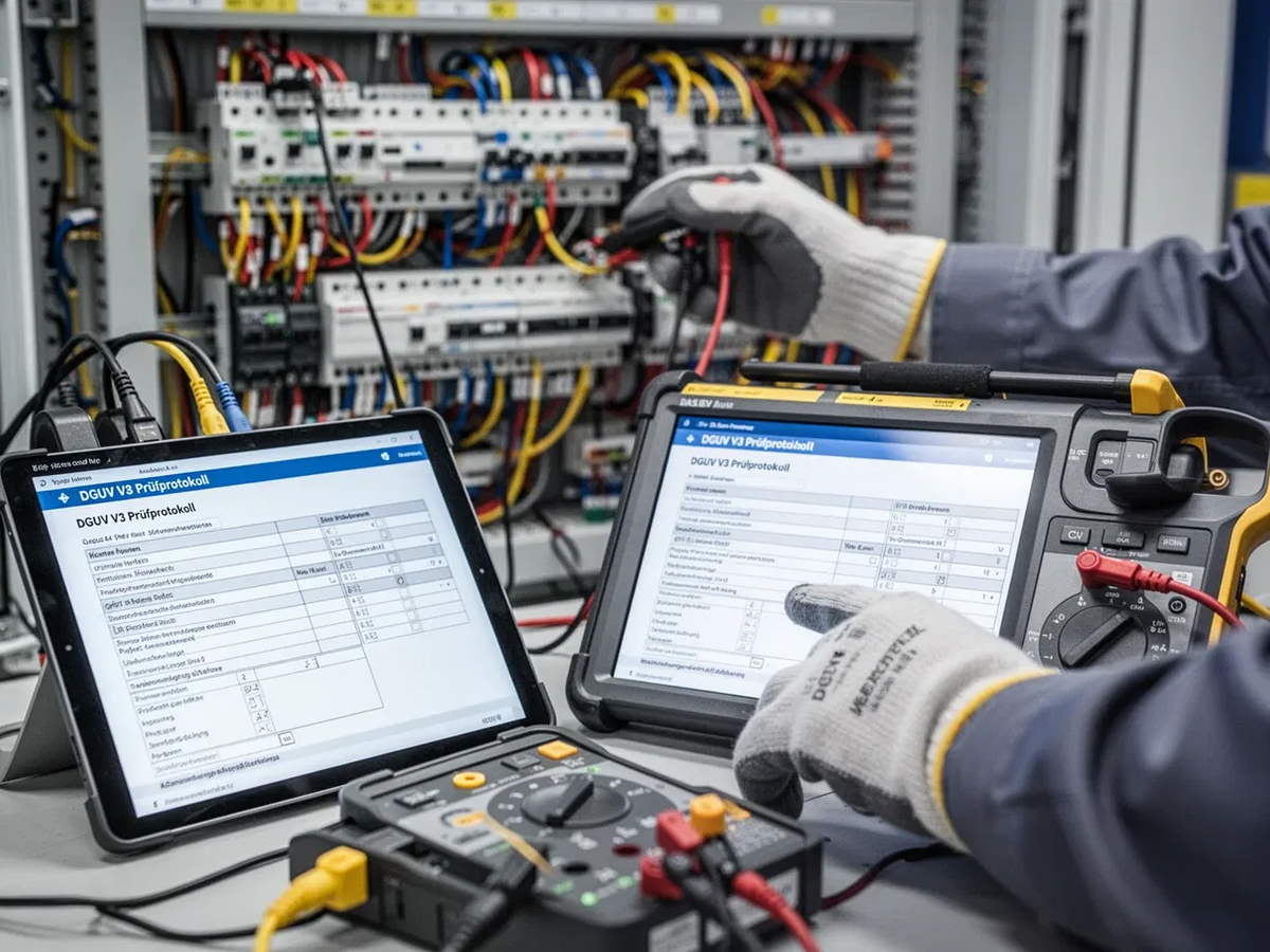 Rechtlich verbindlicher Kern der Arbeitssicherheit ist das DGUV V3 Prüfprotokoll. Es beweist, dass ein Unternehmen seine Sorgfaltspflicht gegenüber Mitarbeitern erfüllt hat. Bei einem Unfall oder Brand fordern Versicherer und Aufsichtsbehörden sofort dieses Dokument an.