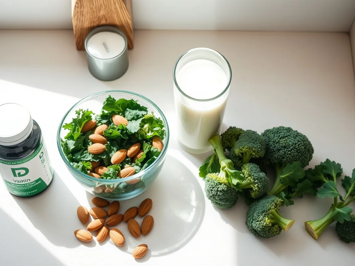 - Gute Kalziumquellen: Milchprodukte, Brokkoli, Grünkohl, Nüsse und angereicherte Lebensmittel.
