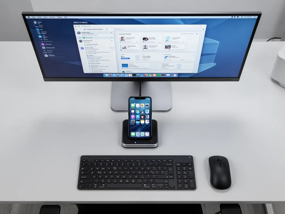 • Plattformen wie Samsung DeX oder iPadOS verwandeln das mobile Gerät an externem Monitor, Tastatur und Maus in einen Arbeitsplatz.