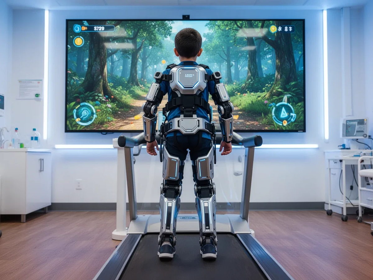 Moderne Exoskelette, virtuelle Spielewelten und maßgeschneiderte Orthesen verbessern die Physiotherapie für Kinder mit Bewegungsstörungen nachhaltig und steigern die Motivation.