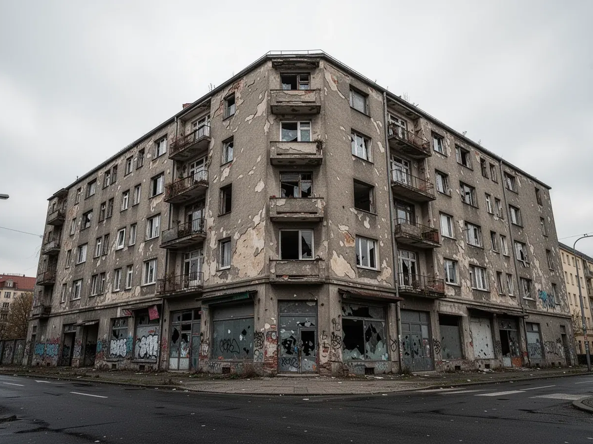 Das Grundstück bietet ein trostloses Bild: Leerstehende Läden, eingeschlagene Fenster und geräumte Wohnungen. Alles scheint bereit für den Abriss, der einem modernen Wohnhaus weichen soll. Doch statt Baulärm herrscht seit Jahren Stillstand.