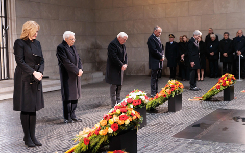 Sie hatten zuvor in der Neuen Wache in Berlin KrĂ€nze niedergelegt. Die Neue Wache ist die zentrale deutsche GedenkstĂ€tte fĂŒr die Opfer von Krieg und Gewaltherrschaft.