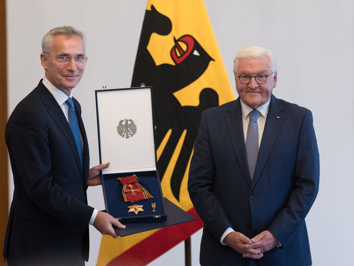 Steinmeier verlieh dem Anfang Oktober aus dem Amt geschiedenen Stoltenberg das Großkreuz des Verdienstordens der Bundesrepublik. «Deine Verdienste um die Sicherheit Deutschlands und der Nato sind historisch», sagte er.
