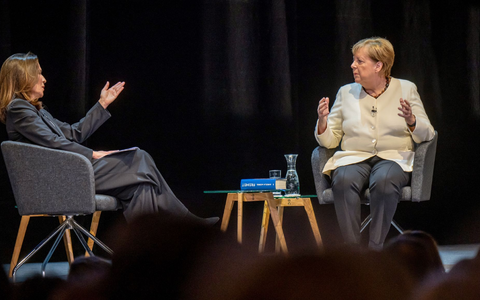 Merkel und Will sitzen sich in Berlin auf der Bühne des Deutschen Theaters in dunkelgrauen Sesseln gegenüber, neben sich jeweils ein Tischchen mit einer Karaffe Wasser. Das Licht gedimmt, im Hintergrund der schwarze Theatervorhang, davor auf blauem Hintergrund in der gleichen Farbe das überdimensionale Cover ihrer Memoiren. Denn darum geht es an diesem Abend: Die ehemalige Kanzlerin und CDU-Vorsitzende stellt rund drei Jahre nach dem Abschied aus der Politik ihre Autobiografie vor. Geschrieben hat sie das gut 700 Seiten starke Buch mit dem Titel «Freiheit. Erinnerungen 1954 - 2021» zusammen mit ihrer langjährigen Vertrauten Beate Baumann.