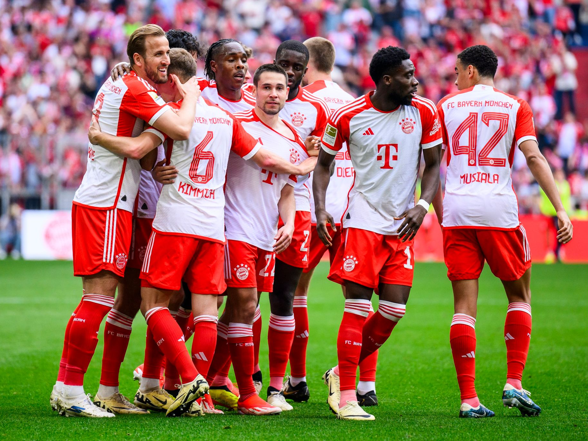 13.04.2024 - 17:38:09 | dpa.deDer FC Bayern hat den designierten Meistertitel für Bayer Leverkusen zumindest um 26 Stunden vertagt. Die Münchner setzten sich im Heimspiel gegen Abstiegskandidat 1. FC Köln mit 2:0 (0:0) durch, der Rückstand auf Leverkusen beträgt damit 13 Punkte. Der Werksclub kann aber mit einem Sieg am Sonntag (17.30 Uhr/DAZN) gegen Werder Bremen seinen ersten Titelgewinn bereits am 29. Spieltag perfekt machen.