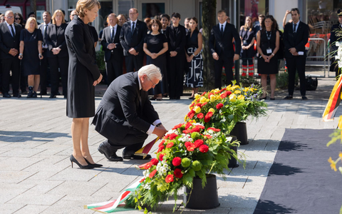 Nach der Trauerfeier legte Steinmeier am Tatort einen Kranz nieder. Schweigend gedachten er und seine Frau der Opfer und verneigten sich still.Â