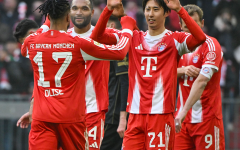 Der japanische Verteidiger (für Raphaël Guerreiro) war einer von vier Neuen beim Rekordmeister neben Urbig, Leon Goretzka (für Kimmich) und Alphonso Davies (für Tom Bischof). Davies stand sogar erstmals seit seinem im März erlittenen Kreuzbandriss wieder in der Startelf der Münchner - diesmal aber ungewohnt als rechter Außenverteidiger.
