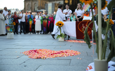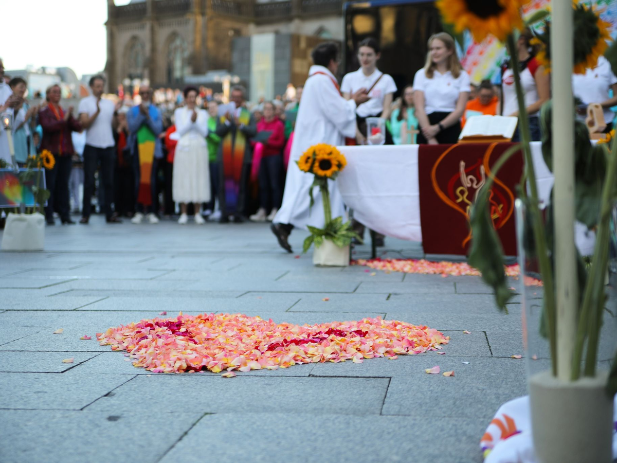 Die katholische Amtskirche brandmarkt Homosexualität als Sünde und diskriminiert queere Gläubige. Die Synodalversammlung zur Reform der katholischen Kirche in Deutschland hatte im März dieses Jahres allerdings mit großer Mehrheit offizielle Segensfeiern für homosexuelle Paare beschlossen. Das letzte Wort in dieser Sache haben allerdings jeweils die Ortsbischöfe, und der Kölner Kardinal Rainer Maria Woelki unterstützt die antiliberale Haltung des Vatikans.