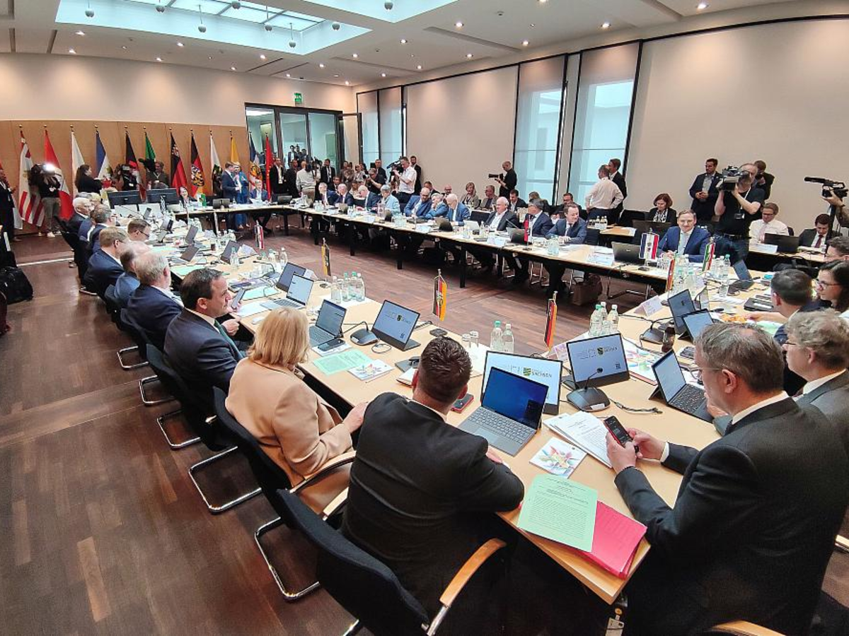 Die Regierungschefs tauschten sich zudem darüber aus, wie das föderale System weiterentwickelt werden kann. "Um die Handlungs- und Leistungsfähigkeit unseres Föderalismus gemeinsam zu erhalten, müssen Bundesgesetze, die finanzielle Folgen für die Länder und Kommunen haben, künftig automatisch durch zusätzliche Mittel vom Bund zumindest anteilig kompensiert werden", sagte Hessens Ministerpräsident Boris Rhein (CDU) am Rande des Treffens.