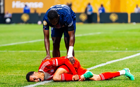 Wenige Stunden zuvor war das Ausscheiden des FC Bayern gegen Paris St. Germain (0:2) in Atlanta von Musialas Verletzung überschattet worden. Der 22 Jahre alte Bayern-Profi, der gerade erst von einem Muskelbündelriss genesen war, verletzte sich gegen Paris kurz vor der Halbzeit in einer Aktion gegen PSG-Keeper Gianluigi Donnarumma, als dieser Musialas Bein eingeklemmt hatte. Der linke Fuß von Musiala stand anschließend seitlich ab. Schon allein die Bilder deuteten auf eine schlimme Verletzung hin.