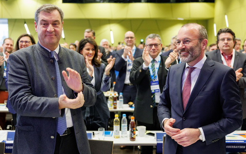 Weber wurde in Nürnberg mit 96 Prozent auf Platz eins der CSU-Liste gewählt. Er erhielt 240 von 250 abgegebenen Stimmen, zehn Delegierte stimmten mit Nein. Der 51-Jährige war bereits bei der Europawahl 2019 als Spitzenkandidat angetreten - damals für die gesamte Europäische Volkspartei (EVP) und das Amt des Kommissionspräsidenten, das er aber am Ende nicht bekam. Seit 2022 hat der Niederbayer neben dem Amt als Fraktionschef im Europaparlament auch den EVP-Parteivorsitz inne.