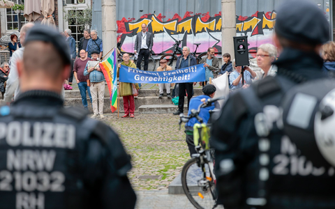 Mehrere Hundert Demonstrantinnen und Demonstranten gingen nach Angaben der Polizei bei mehreren Veranstaltungen auf die Straße. Sie protestierten gegen Aufrüstungspläne.