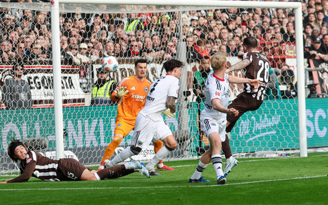 Die besten Chancen hatte St. Pauli mit zwei Pfostentreffern in nur kurzer Zeit: In der 23. Minute hatte dieses Pech zunächst Mathias Pereira Lage. Er schoss aus kurzer Distanz ans Aluminium, nachdem ihm Tomoya Ando den Ball zuvor im Fallen mit dem Hinterkopf vorgelegt hatte. Der Pfostenschuss von Danel Sinani (31.) sah aus 20 Metern vergleichsweise unspektakulär aus.