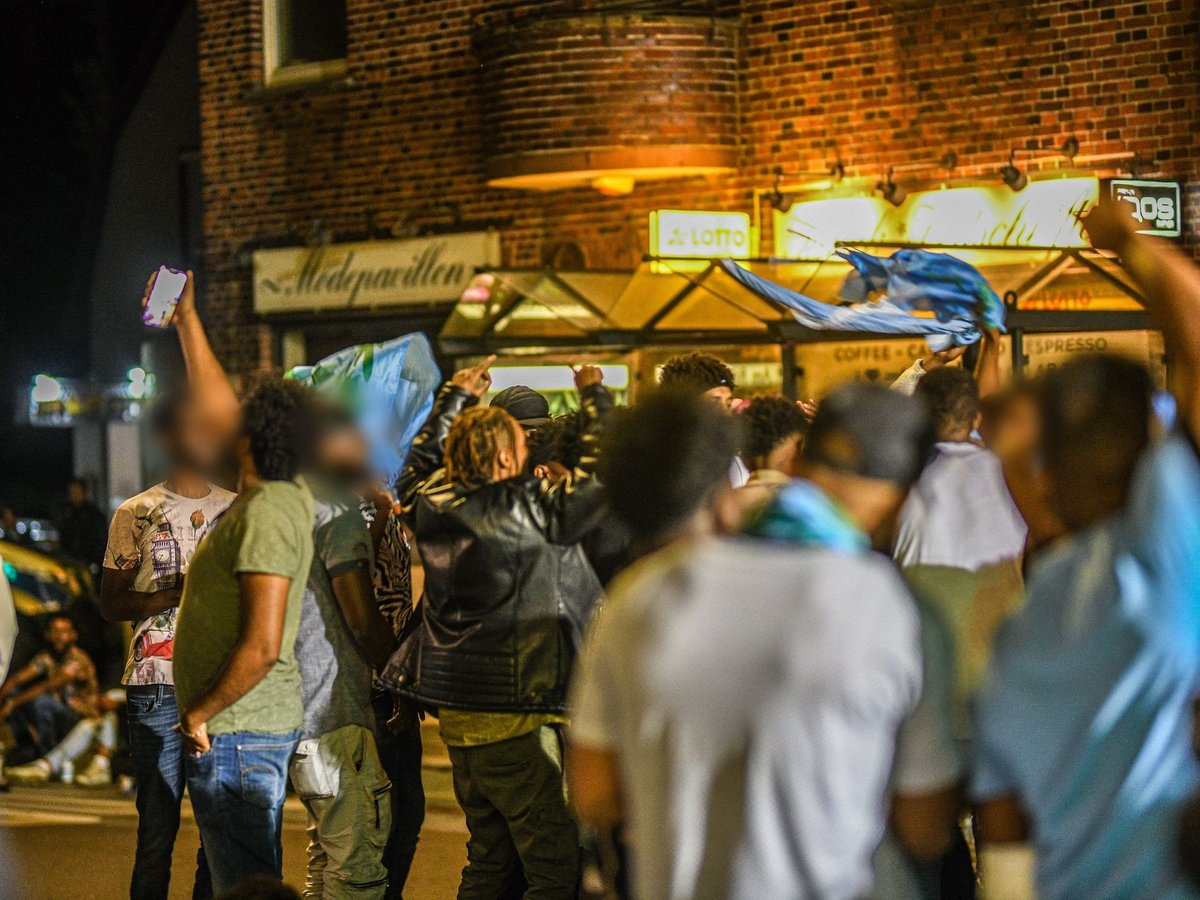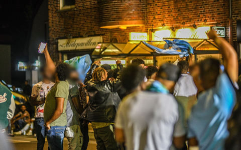 24 Beamte seien verletzt worden. Die Polizei kesselte am Abend 170 Personen ein. Sie würden des schweren Landfriedensbruchs beschuldigt, sagte der Sprecher. Auf Videos in sozialen Medien ist zu sehen, wie Männer mit Holzlatten und Flaschen auf Polizisten losgehen.