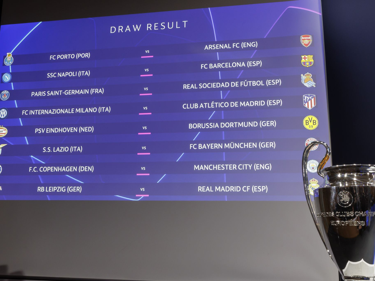 In den weiteren Achtelfinals trifft Titelverteidiger Manchester City auf das Überraschungsteam FC Kopenhagen, der FC Barcelona spielt gegen den italienischen Meister SSC Neapel. Paris Saint-Germain erwischte mit Real Sociedad San Sebastian einen vermeintlich leichten Kontrahenten. Der FC Arsenal muss gegen den FC Porto antreten, Inter Mailand duelliert sich mit Atlético Madrid.
