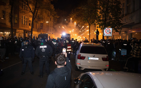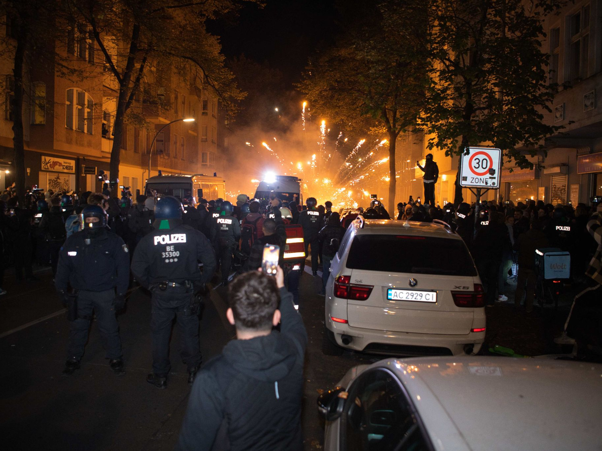 Ein dpa-Reporter sagte, in Neukölln hätten vier Autos und ein Kleintransporter gebrannt. Böller und Steine seien auf Polizeiautos geschmissen worden. Auch seien antisemitische und pro-palästinensische Parolen skandiert worden.