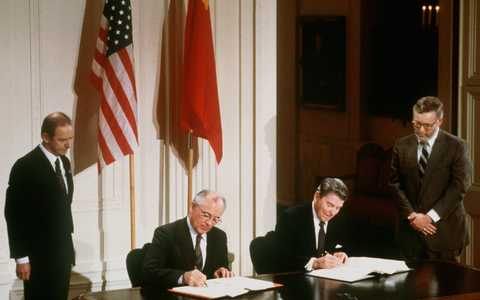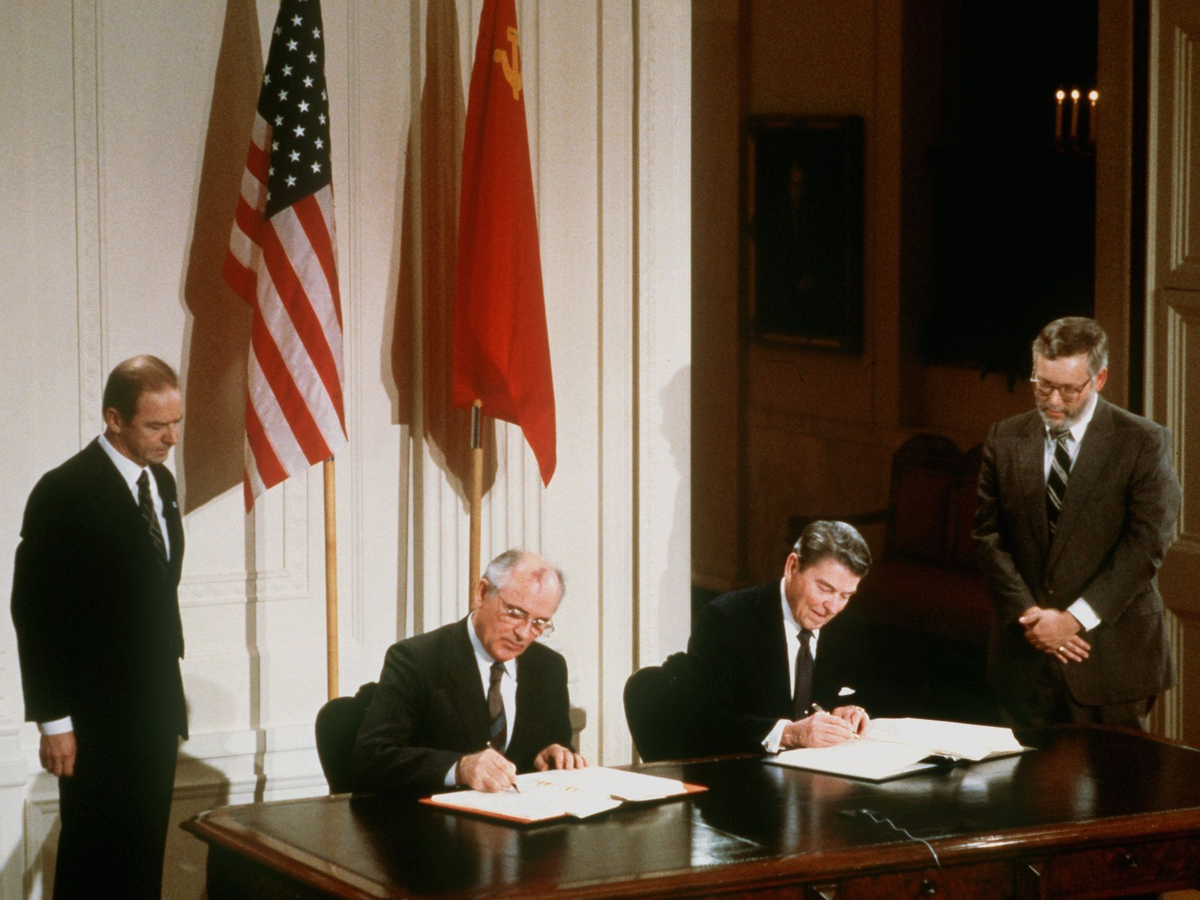 Der 1987 zwischen den USA und der Sowjetunion geschlossene Vertrag sah die Abschaffung aller landgestützten ballistischen Raketen und Marschflugkörper mit kürzerer Reichweite von 500 bis 1.000 Kilometern sowie mit einer mittleren Reichweite von 1.000 bis 5.500 Kilometern vor. 2019 wurde das Abkommen dann von den USA aufgelöst.