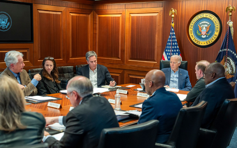 US-Präsident Joe Biden (3.v.r) trifft sich mit Mitgliedern des Nationalen Sicherheitsteams. - Foto: Adam Schultz/The White House/AP/dpa
