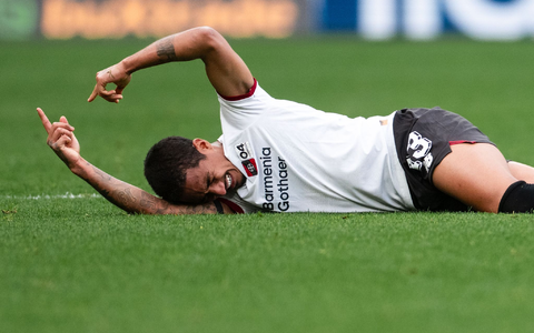 Kurz vor der Pause reklamierte der Vizemeister nach einem Handspiel im Strafraum Elfmeter, doch der Schiedsrichter entschied nach VAR-Check auf Abseits in der Entstehung der Szene. Die weitgehend ereignislose erste HĂ€lfte ĂŒberschattete dann eine möglicherweise schwere Verletzung: Bayer-Verteidiger Arthur blieb im Mittelfeld unglĂŒcklich im Rasen hĂ€ngen und verdreht sich das linke Knie. Unter Applaus wurde der Brasilianer mit TrĂ€nen vom Platz getragen.Â
