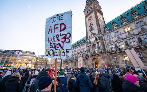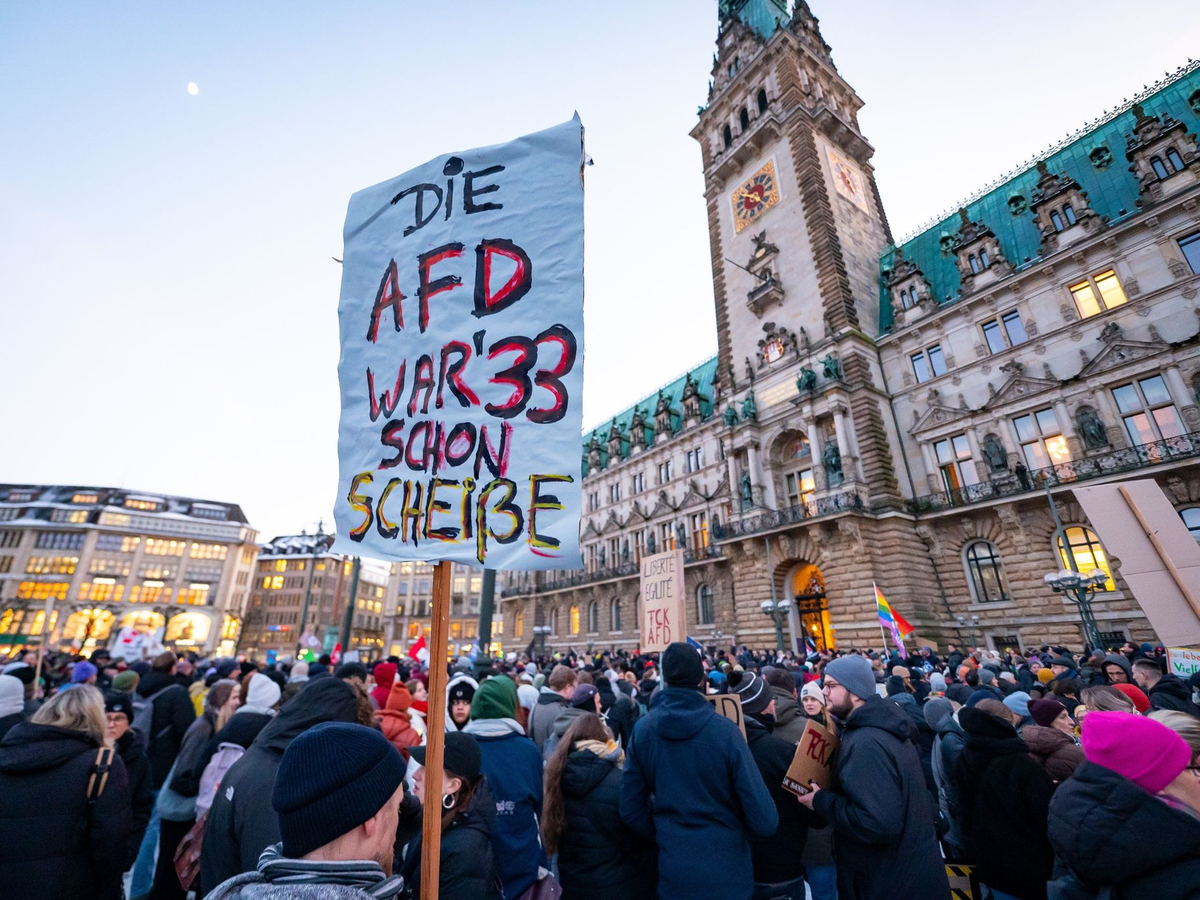 Auch in Hamburg demonstrierten am Freitag nach Polizei-Angaben rund 50.000 Menschen. Wegen des großen Andrangs musste die Demo abgebrochen werden. Nicht nur Prominente wie Panikrocker Udo Lindenberg, BAP-Sänger Wolfgang Niedecken und Schauspieler Matthias Brandt rufen zur Teilnahme auf, auch viele Bundesliga-Clubs zeigen klar Flagge. «Nie wieder ist jetzt! Kommt alle rum», schreibt der FSV Mainz 05. Es sei fünf vor zwölf, warnt Christian Streich, Trainer des SC Freiburg, und von seinem Leipziger Kollegen Marco Rose kommt die Mahnung: «Ich glaube, dass es ganz wichtig ist, dass man gegen Dummheit und Rechtsextremismus in jeder Form aufsteht.»