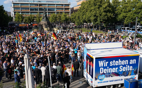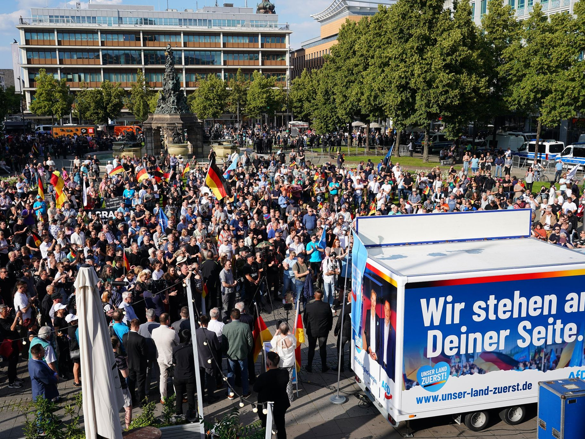 Mehrere Redner forderten, «Messergewalt» dürfe in Deutschland «nicht zur Normalität werden». Der politische Islam sei «die größte Gefahr für unsere Sicherheit». Bei der Kundgebung waren neben Deutschland-Fahnen auch Banner mit Aufschriften wie «Remigration jetzt» und «Macht die Grenzen dicht» zu sehen. Die Veranstaltung begann mit einer Schweigeminute für den Polizisten Rouven Laur, der am vergangenen Sonntag an den Verletzungen der Messerattacke gestorben war.